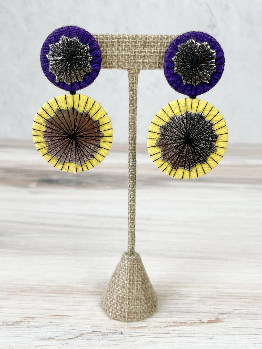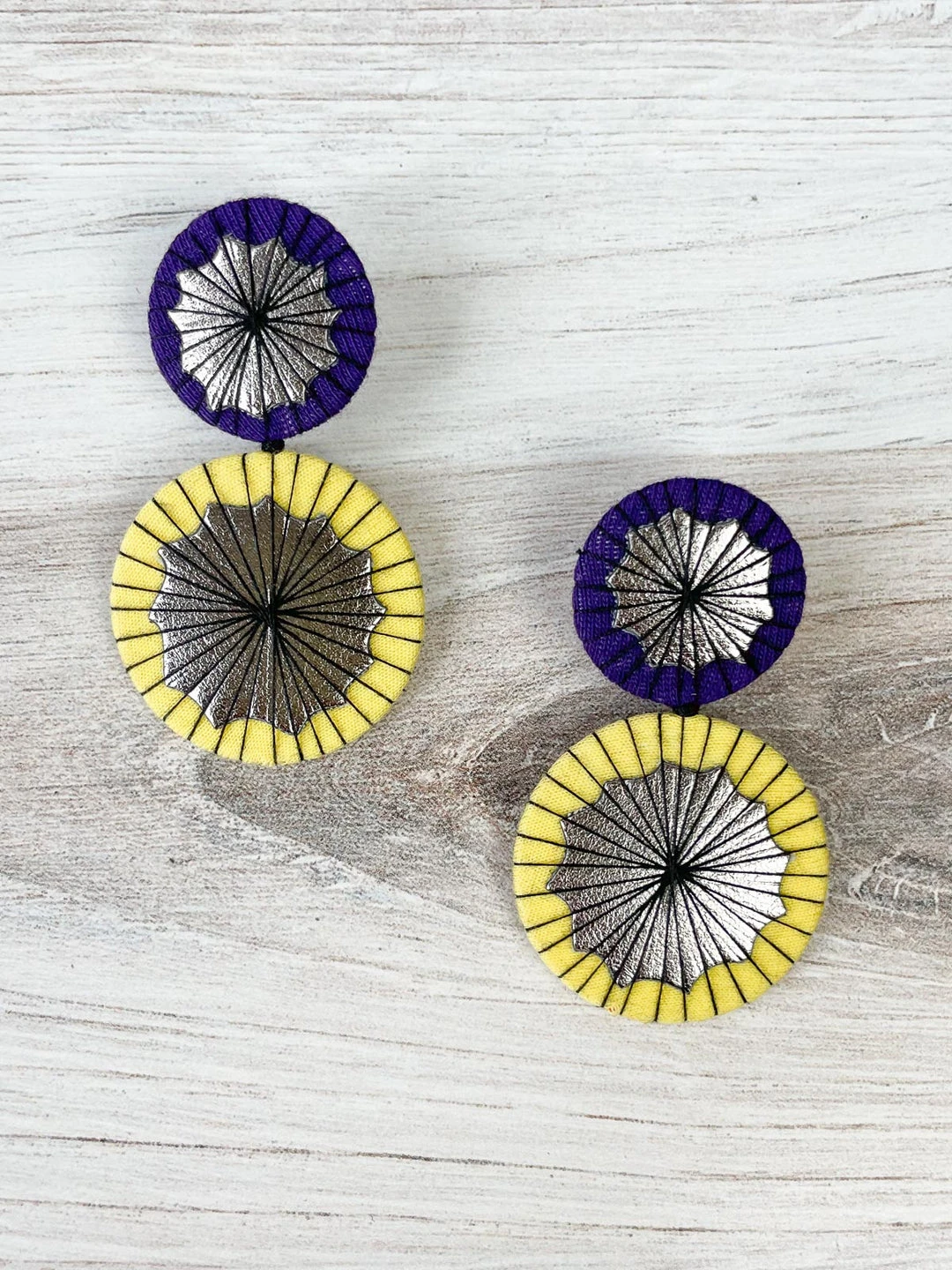 Beyond Threads Double Shiitake Earrings, Purple/Yellow