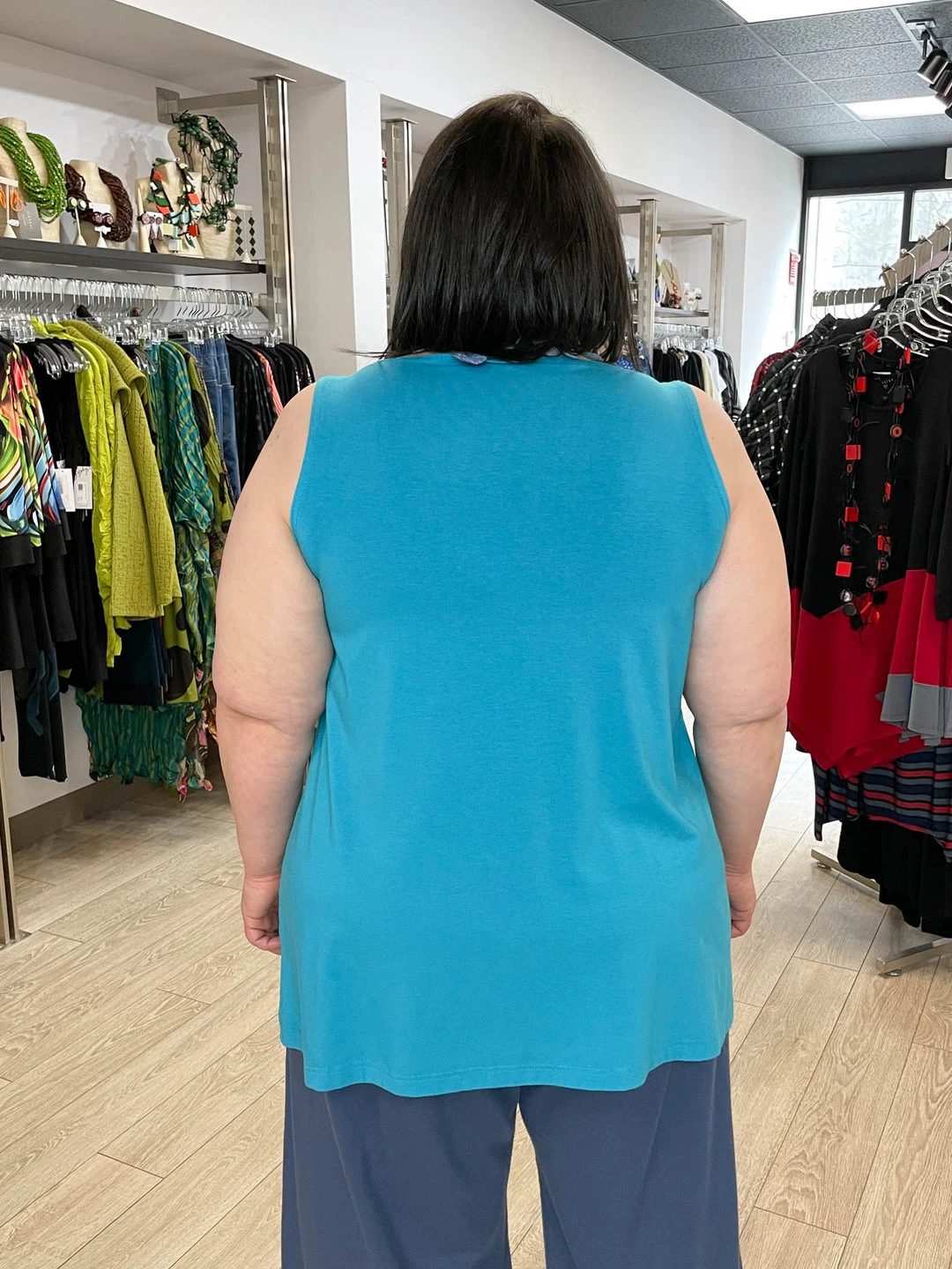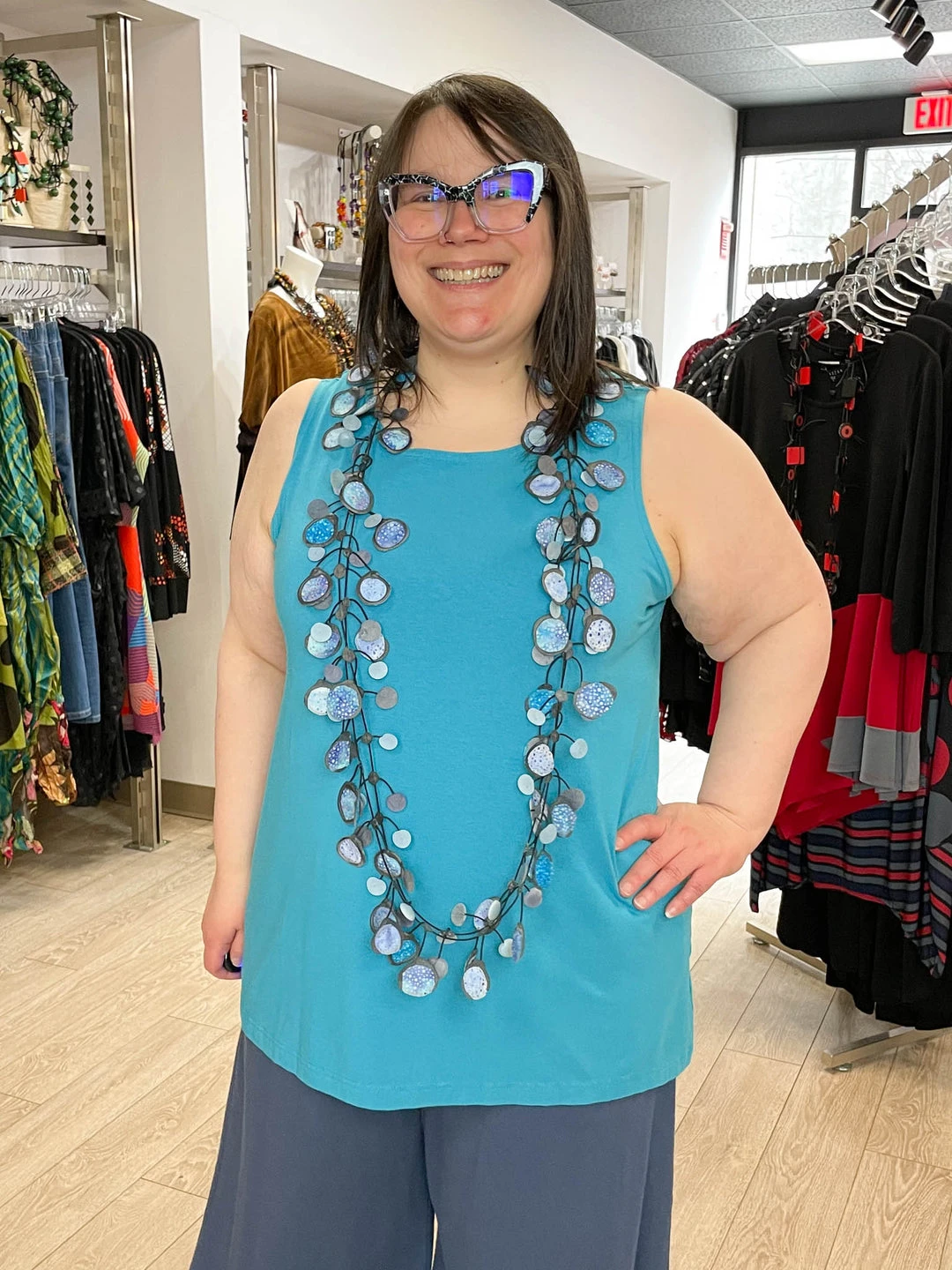Bryn Walker’s Pira Tank is the perfect layering piece, with a longer length relaxed a-line body and round neckline. The Luce D’Acqua print has a modern all-over dot effect with a deep navy tone.