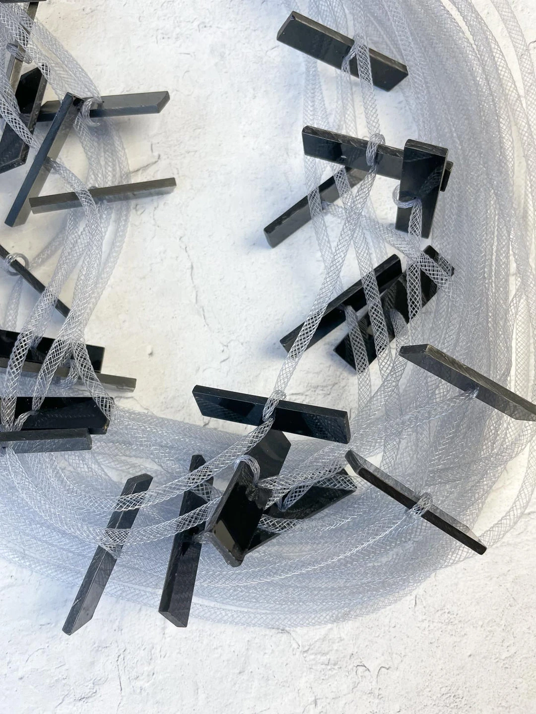 Christina Brampti Christina Brampti Short Multi Strand Tulle & Acrylic Bar Necklace, Grey/Black