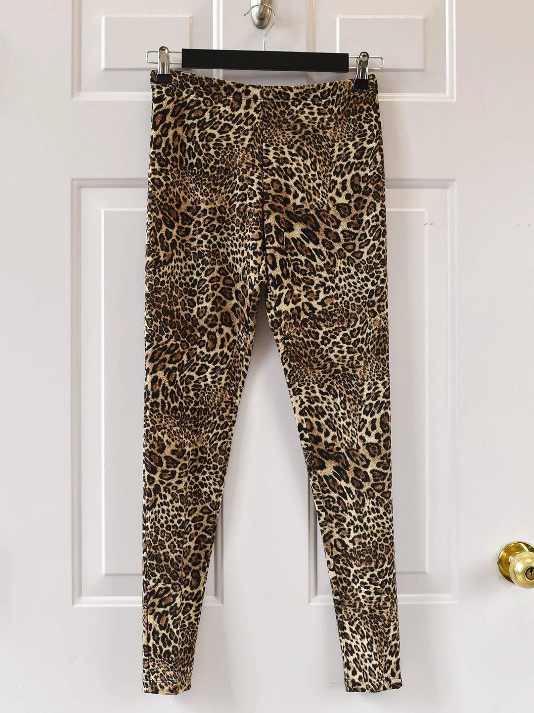 Perfect for fall and winter, these longer full length leggings from Comfy USA are in a rich leopard print light sweater knit. Pull on stretch waist.