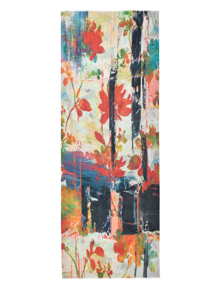 This watercolor floral design has a distressed, painterly feel. Digitally printed on soft modal for a great feel when wearing and superb drape. The deep blue pairs perfectly with your favorite dark jeans and offers a splash of color!