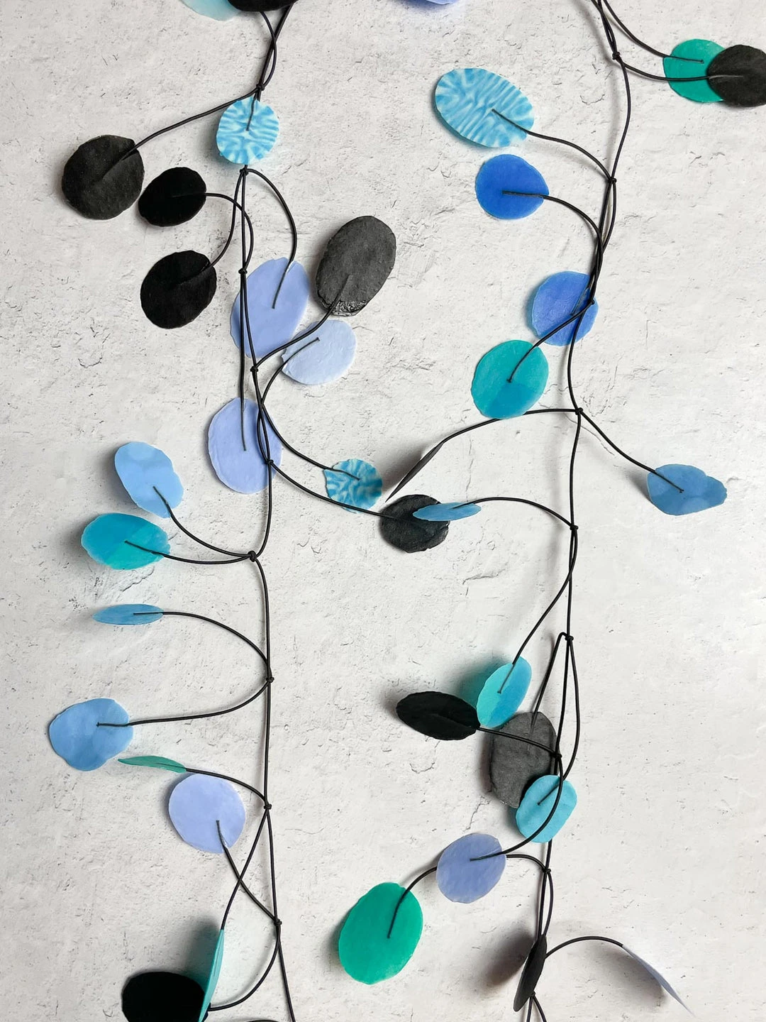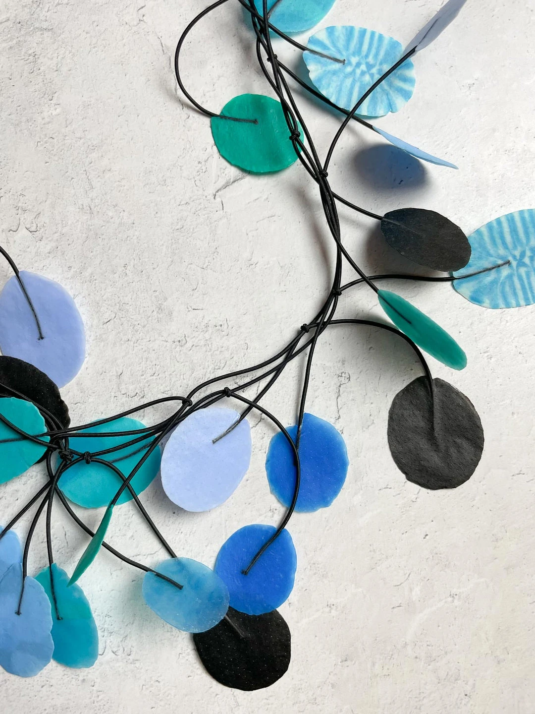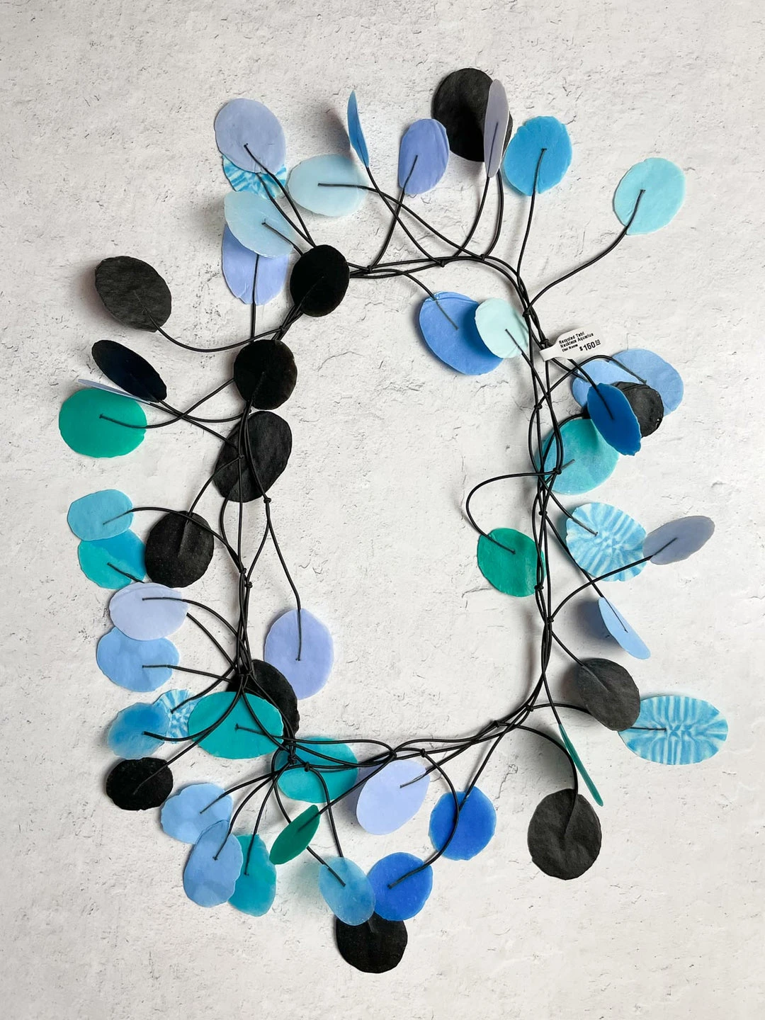 Oval shaped “petals” on long stretch cord make this a versatile piece. Wear long, doubled up or tripled as a collar – even wrap around the wrist as a bracelet! Have fun layering multiple styles and colors to create a truly unique look!