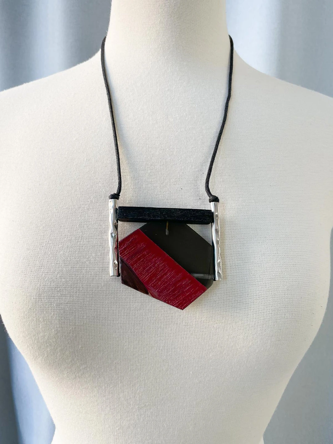 Escape From Paris Geometric Wood Resin Metal Tube Necklace, Ruby