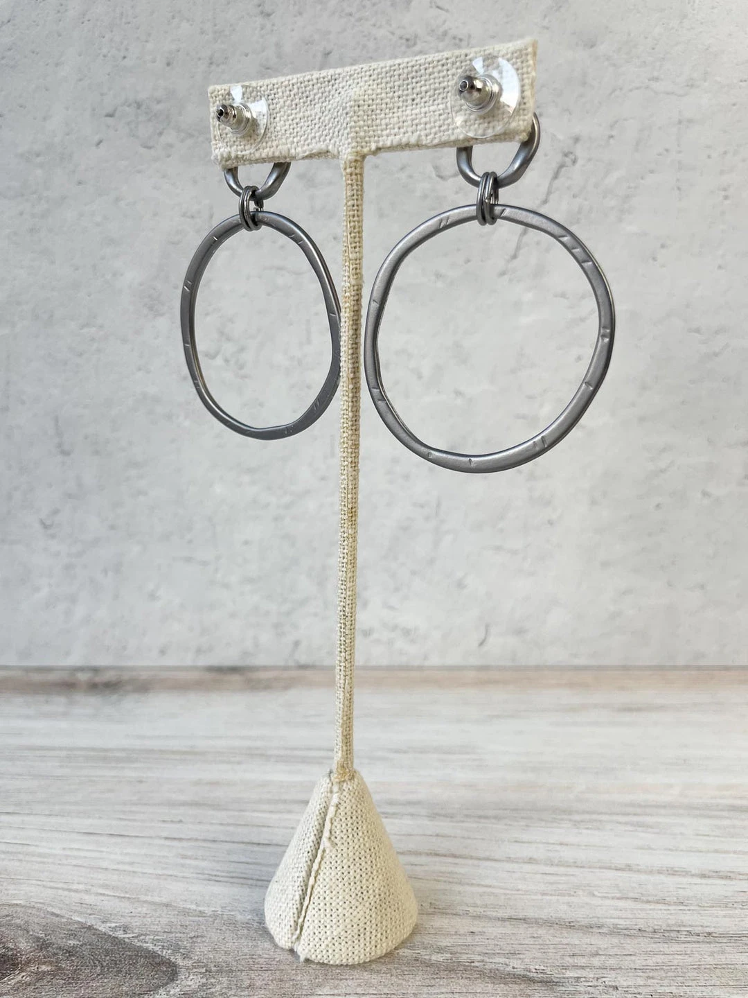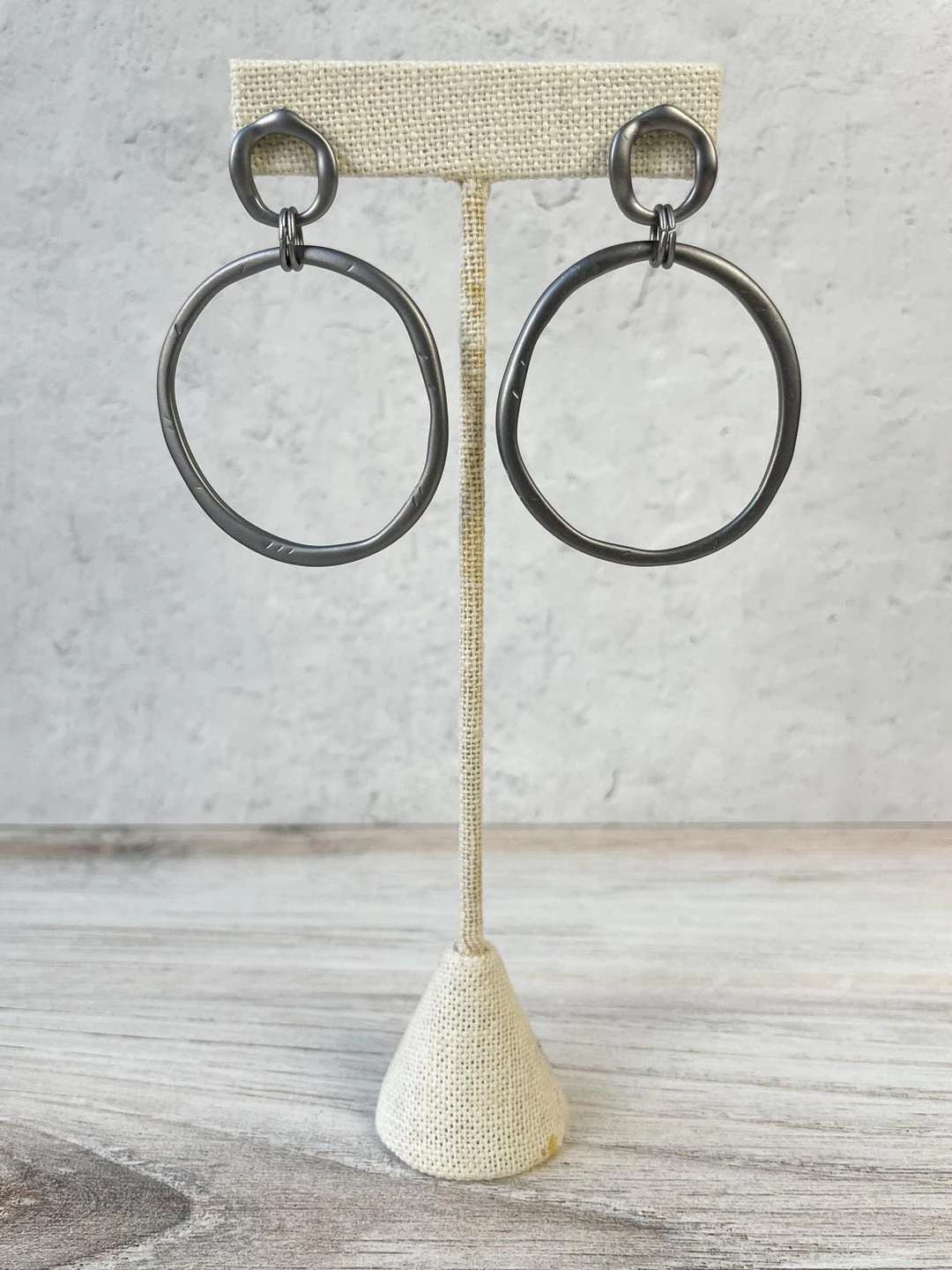 Escape From Paris Hammered Circled Drop Earrings, Matte Gunmetal