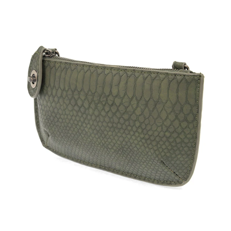 This Python Mini Wristlet Clutch in its fresh colors and sleek silhouette is the finishing touch to any outfit. Its classic and versatile style makes it perfect for the office, a date night, special event and more. It features a polished turn lock, six card slots and interior zipper for change. Update your style in many ways, with removable straps that let you turn this bag from a wallet, to crossbody, belt bag or wristlet.