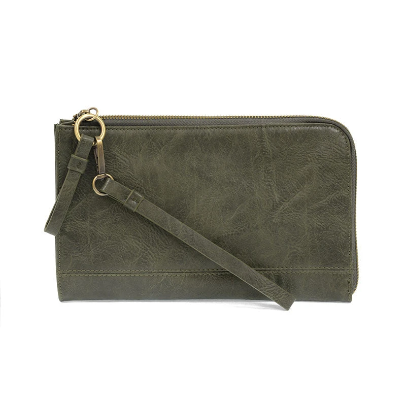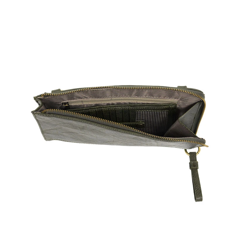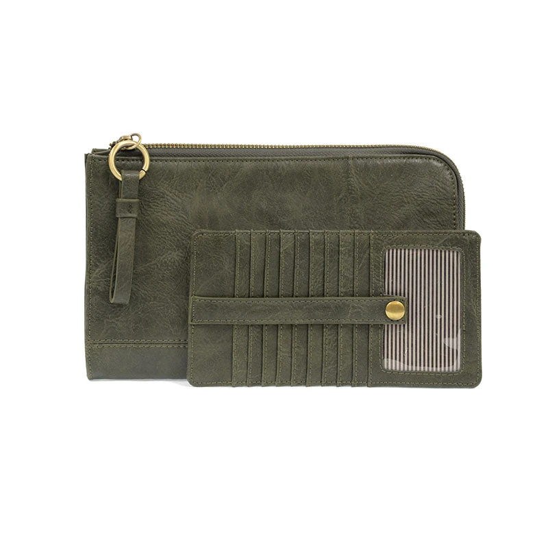 Karina combines sleek styling with uber-organization in a beautiful antique look vegan leather! The ultimate in versatility, this bag can be worn as a crossbody, carried as a clutch or as a wristlet. The included bonus wallet with credit card slots, ID window, zippered change pocket and billfold will keep your organized on the go and can be carried separately.
