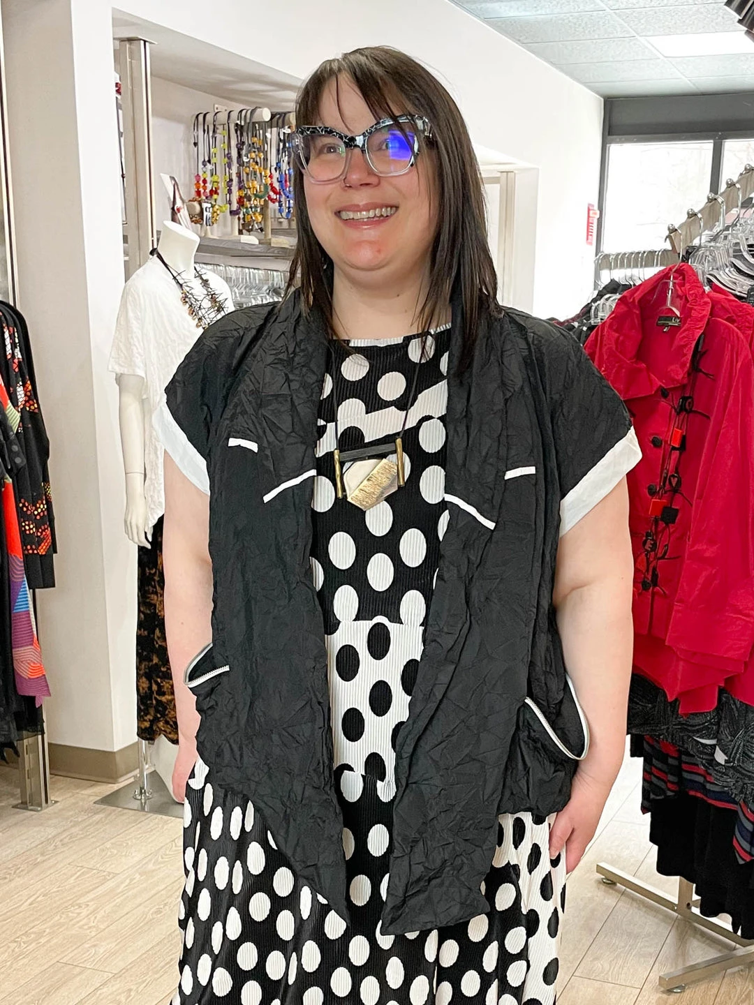 Shown with Kozan’s Dakota Tank in Black Tencel and Andi Pant in Pepper. Also shown with Kozan’s Olivia Dress in Salt & Pepper.