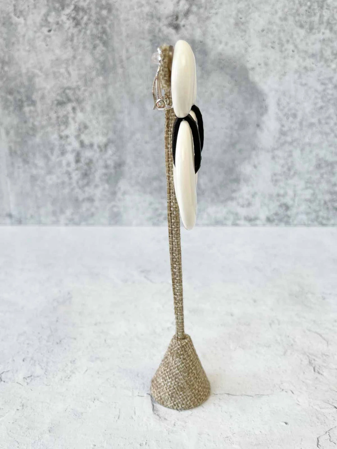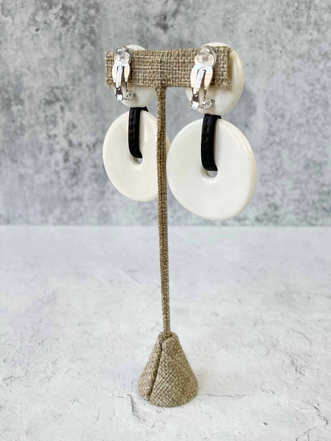 These classic ear clips from Monies feature a two piece circular design in polished bone, accented with a leather.