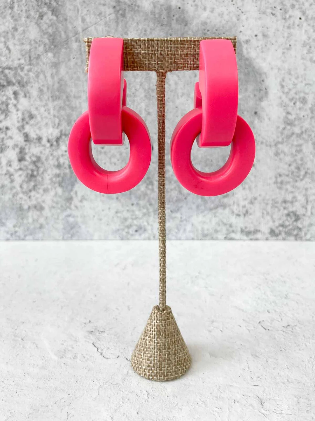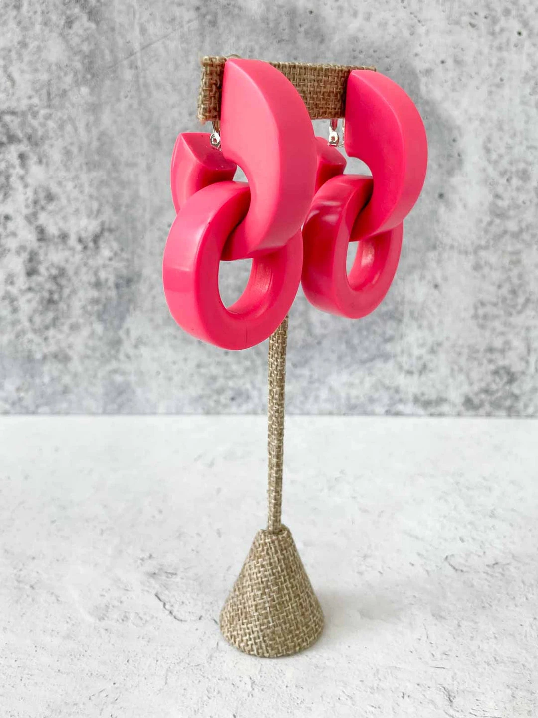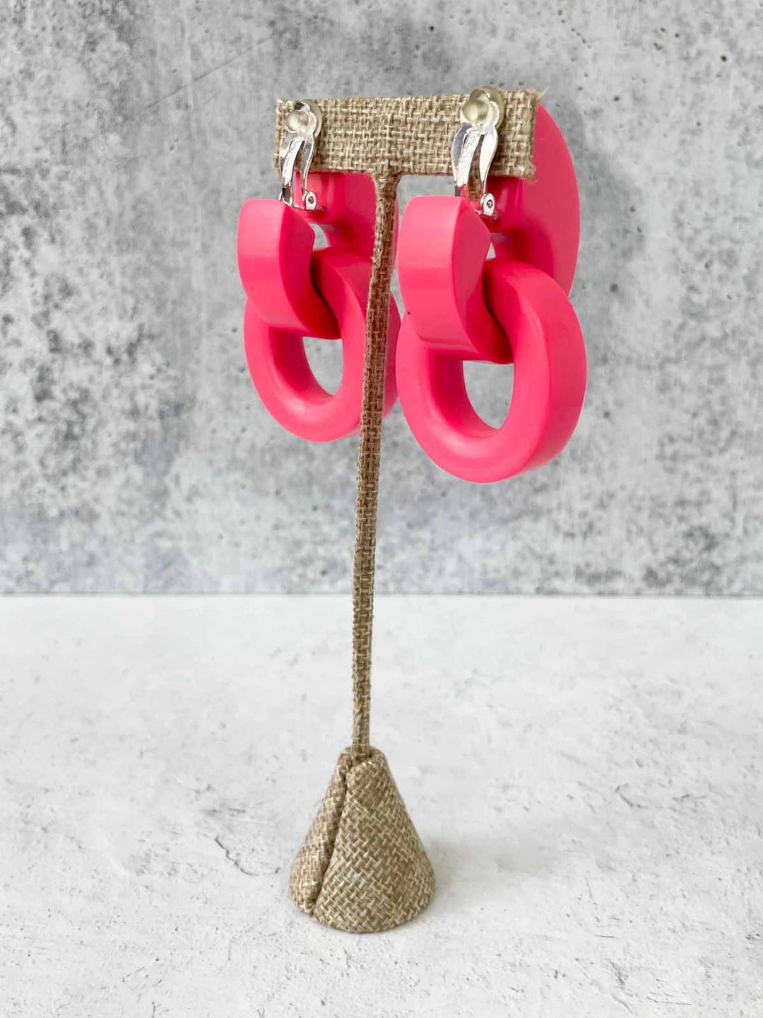These clip on earrings have a link effect with circular drops from a curved hoop.