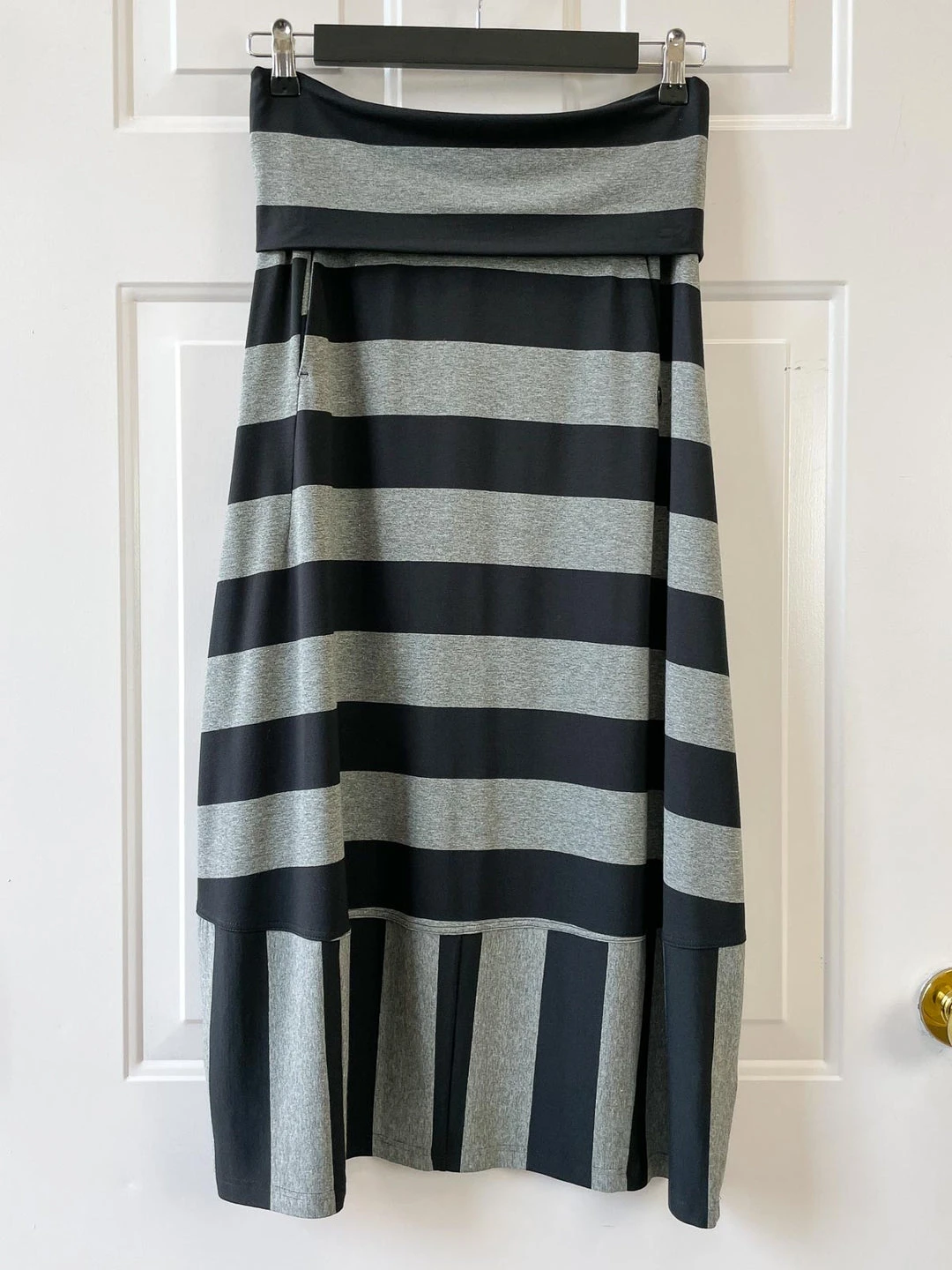 Q’Neel Q’Neel Wide Stripe Midi Lantern Skirt, Black/Grey