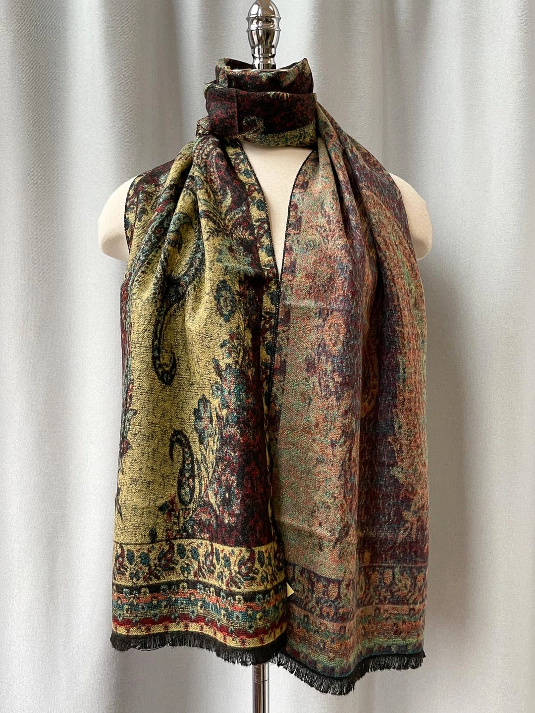 Rapti Fashion Rapti Fashion Cashmere Rectangular Scarf, Black Yellow Paisley