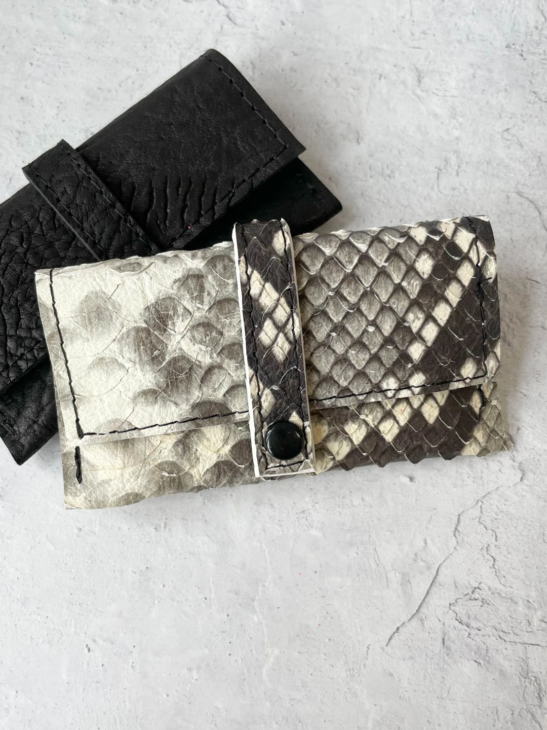 This chic card holder is the perfect case for credit cards or business cards, with a simple snap closure flap design.Â