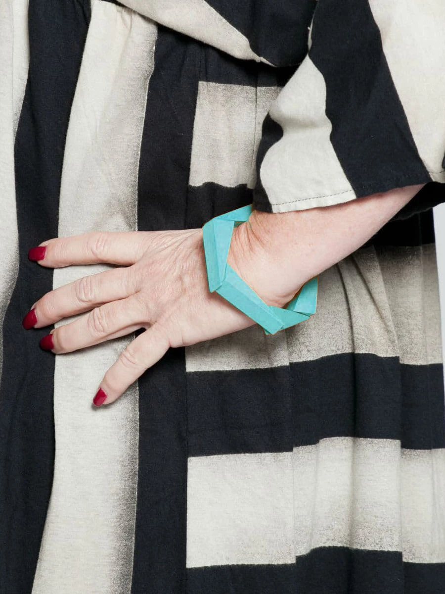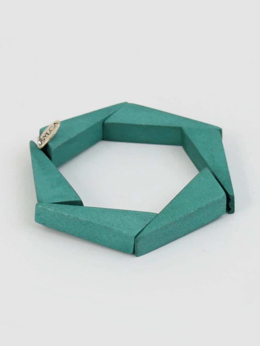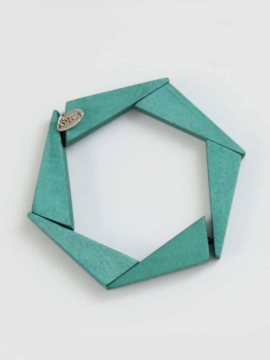 This unique bangle is easy to wear with other pieces or by itself! The colored wooden pieces are strung on a stretch cord which makes it a one size fits most bracelet! Pair with a coordinating necklace and stack multiple colors or styles for an extra bold look!