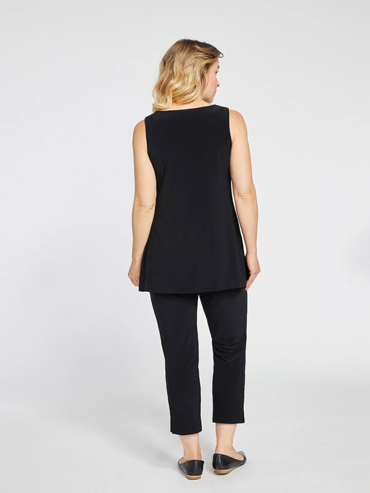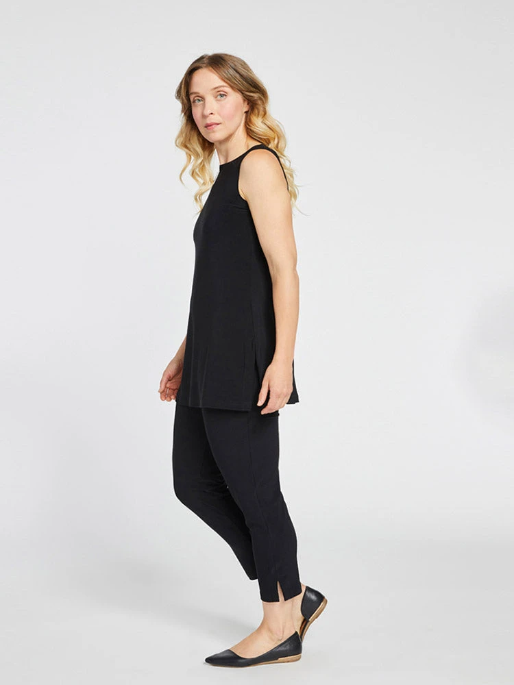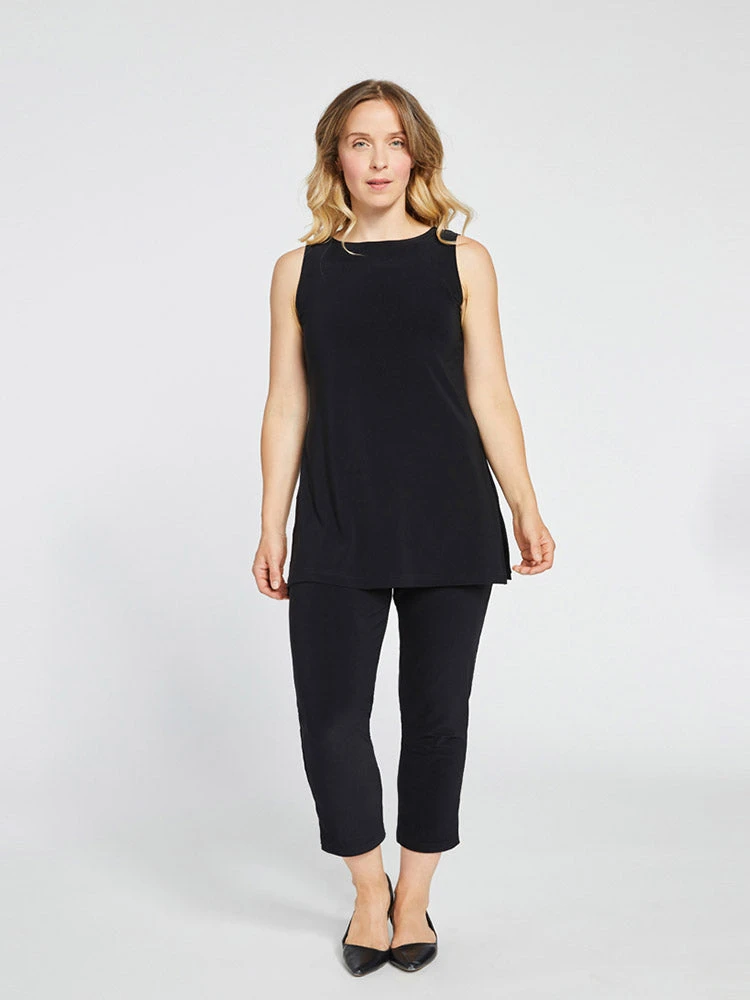 A Sympli essential, this sleeveless basic tunic has a straight shape with high neckline. Even hem with side slits.