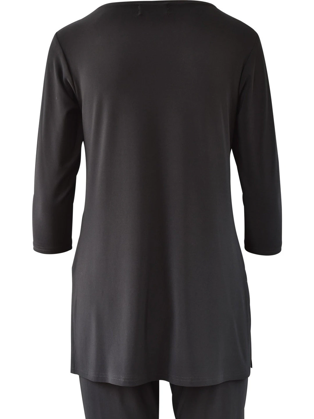 A Sympli essential, this basic tunic has a relaxed but straight fit, with a high round neckline and three quarter sleeves. Even hemline with side slit vents.