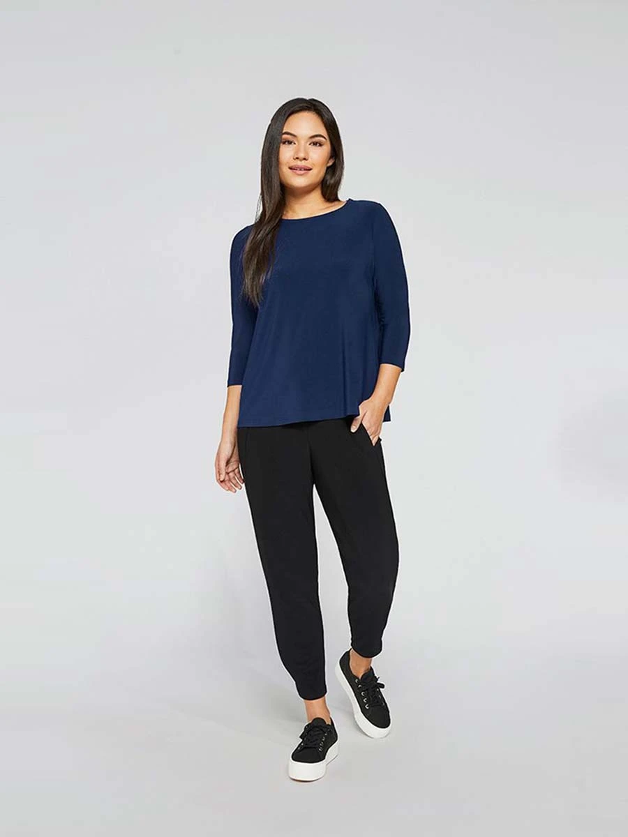 A wardrobe essential Sympli’s Trapeze Top has a relaxed slight a-line body with and even hemline, round necklace and three quarter sleeves.